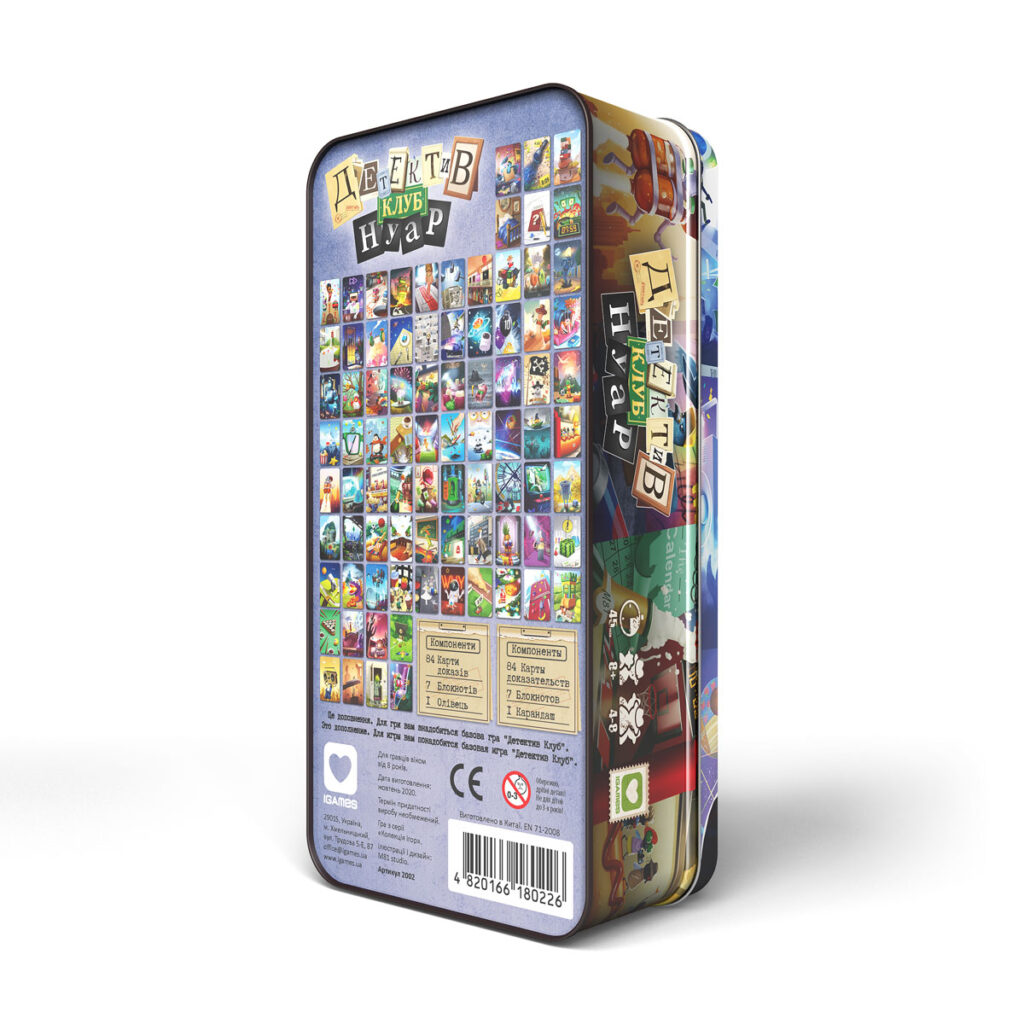 Мова: українська, мовонезалежнаДетектив Клуб: Нуар – це перше доповнення для настільної гри Детектив Клуб, що вже встигла полюбитися гравцям та оглядачам по всьому світу. Це 84 нові чудові ілюстрації, намальовані у стилі Нуар. Нові карти дозволяють істотно врізноманітнити гру.