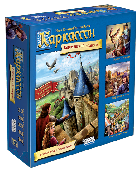 Каркассон. Королівський Подарунок – це нове видання гри «Каркассон», суперпопулярної економічної стратегії для всієї родини, класики плитковкладальних ігор з механікою розміщення робітників. Покращений дизайн, вдосконалені правила, але головне – цілих п’ять доповнень в одній коробці! Даний набір буде справді королівським подарунком як для новачка, так і для досвідченого гравця, що перепробував купу настільних ігор.