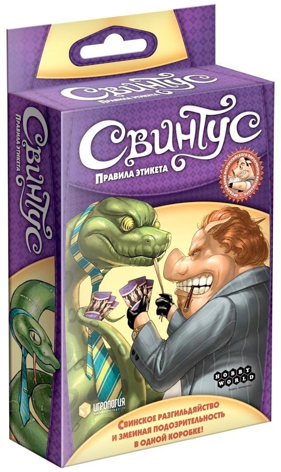 Настільна гра Свинтус: Правила етикету – це розширена версія  настільної гри Свинтус. Крім повного набору карт з оригіналу, в гру додані нові 12 карт «Зміїної манірності»! Завдання ж гри зовсім не змінилися, вам як і раніше потрібно позбутися від усіх своїх карт швидше за суперників. Але зробити це стало ще складніше! Свинська бюрократія здатна кого завгодно звести з розуму нескінченними картами приписів. І, звичайно, потрібно завжди бути напоготові! Зміїні карти етикету дозволять гравцям карати один одного буквально за що завгодно! Тепер вам доведеться стежити не тільки за картами, а й за своєю мовою, жестами і навіть поглядами …