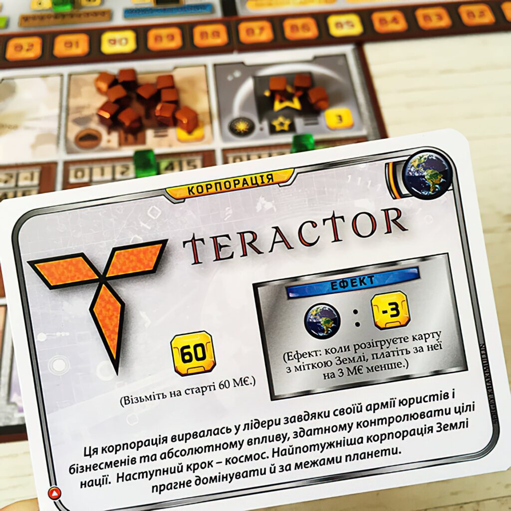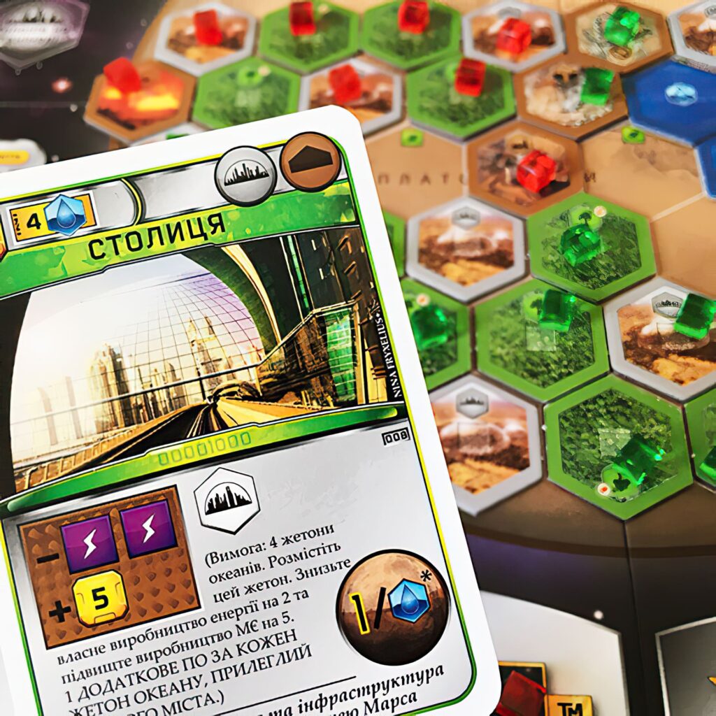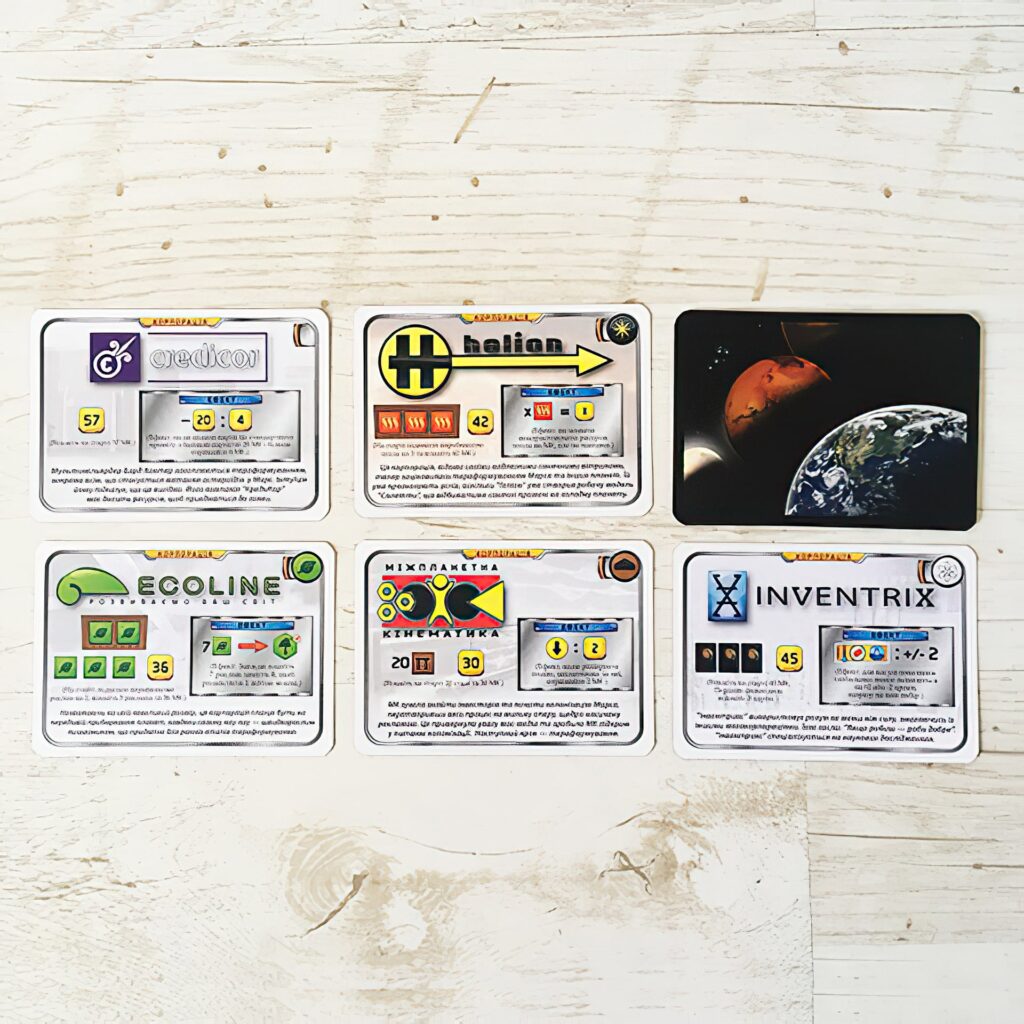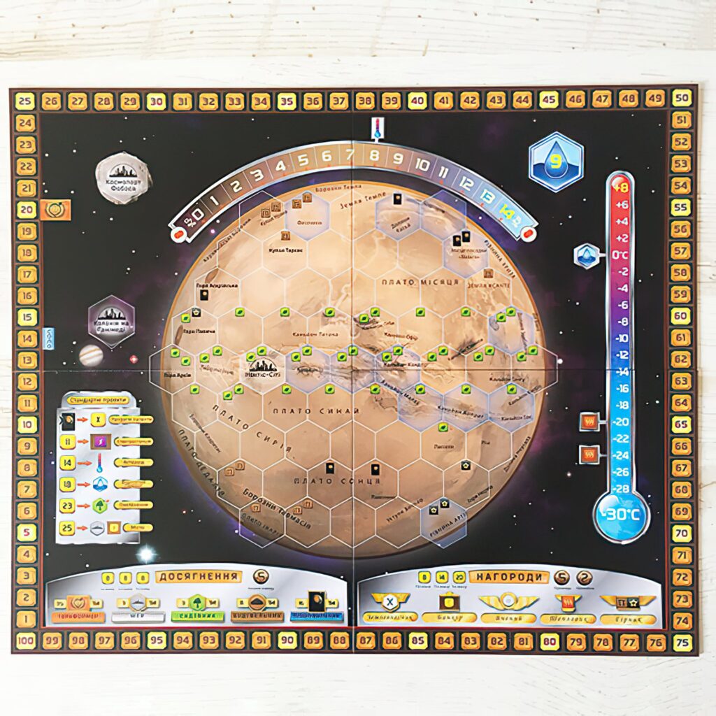 Після першої ж партії, ви відчуєте захоплення, побачивши наскільки ж велике розмаїття ігрових комбінацій і здивуєтеся приголомшливій реіграбельності цієї настолки. Тому запрошуємо вас вже зараз встати біля керма однієї з мегакорпорацій, і зробити Марс придатним для життя, в ім’я всього Людства!