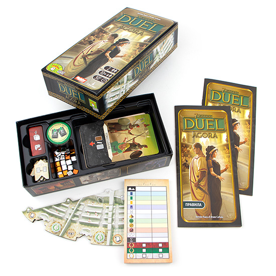 7 Чудес: Дуель. Агора – це нове доповнення до однієї з найкращих дуельних ігор – 7 Чудес: Дуель. Тепер гравцям стає доступний шестипалатний Сенат. Займаючи в ньому крісла, учасники гри моментально отримують доступ до спеціальних здібностей. Крім того, разом з органом правління в грі з’являється ще один спосіб досягти перемоги. Тепер партію можна виграти, зайнявши найбільшу кількість місць в Сенаті.
