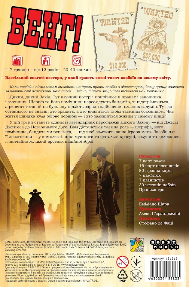 Перед вами версія гри українською мовою. Ви можете купити цю гру російською – “Бэнг!“.