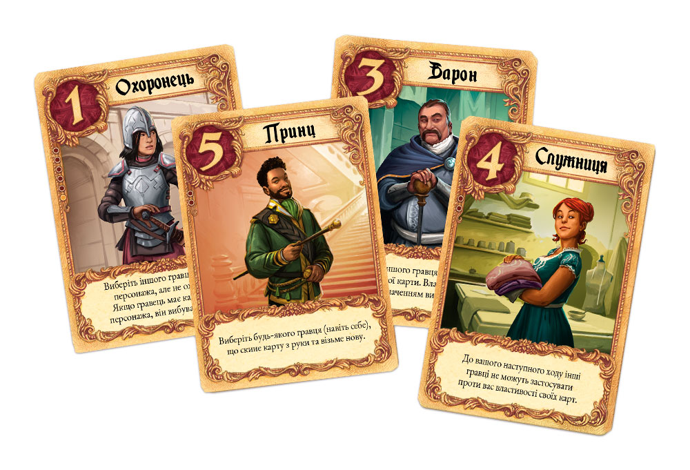 Властивості персонажів дозволяють захиститися від ворожих дій, піддивитися карту противника, помінятися з кимось картами, помірятися силою карт, змусити суперника взяти іншу карту або спробувати вгадати карту противника і в разі успіху вибити його з раунду. Принцеса Аннета — карта з найбільшим значенням, але, якщо гравець скине її, він відразу ж вибуває.