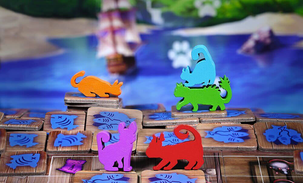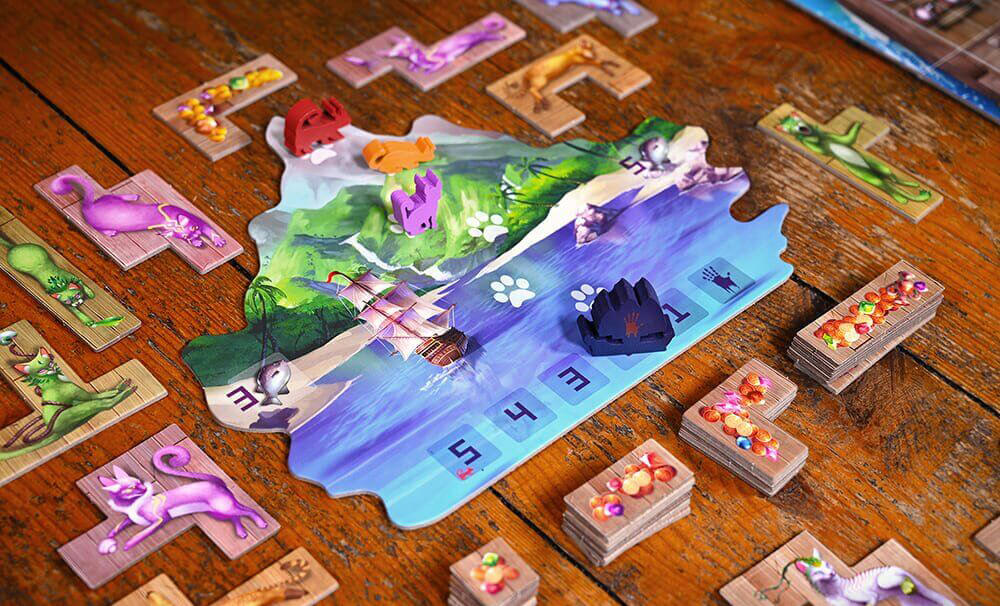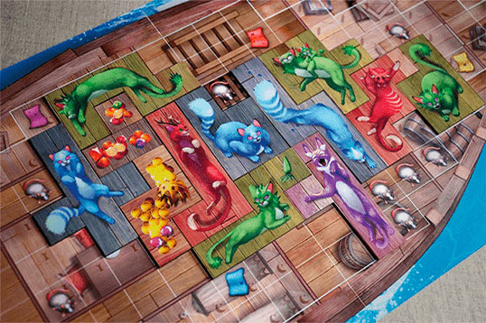 Гравці отримують особисті планшети кораблів і жетони кошиків. Вони вибирають колір котів і по черзі розміщують по одній фігурці свого кота на треку черговості ходів на острові.