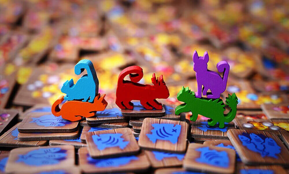• родиною котів вважають щонайменше три одноколірних тайли, що ортогонально прилягають один до одного. Гравці отримують очки за врятовані котячі родини: за 3 родини дається 8 очок, за 4 – 11 очок, а за 7 – 25 очок;
