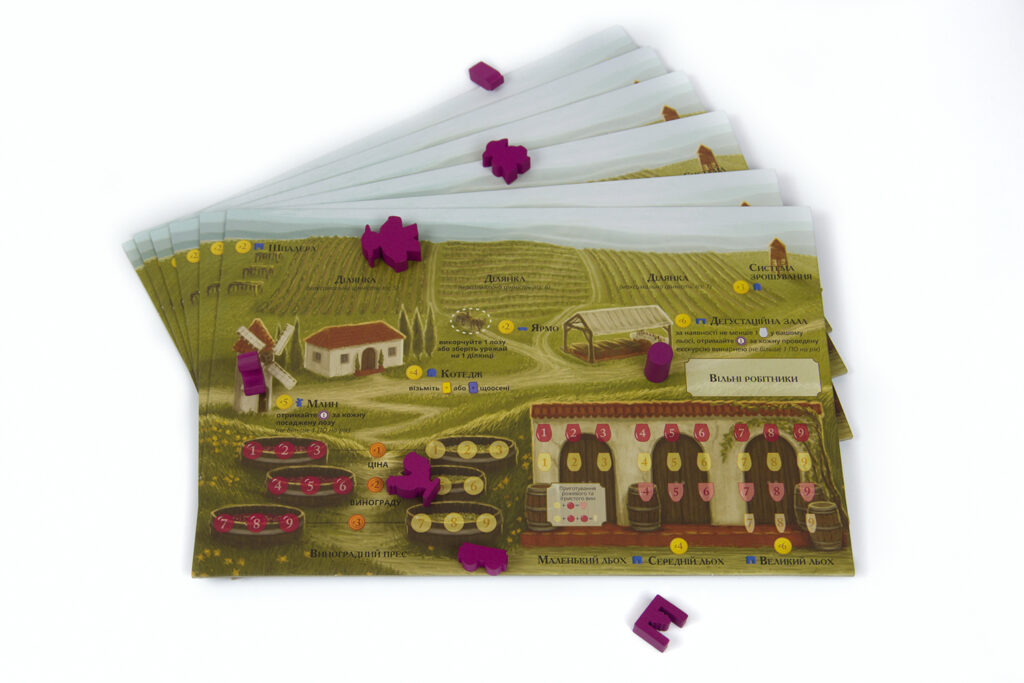 Виноробство – це українське видання стратегічної гри від Джеймі Стегмайера про створення своєї власної успішної справи по виноробству. Гравці починають з невеликою виноградною фермою, розвиваючи своє ім’я в успішну і популярну марку.